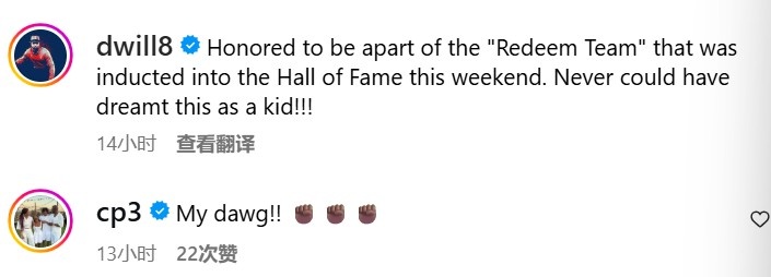 克里斯-保罗在评论区激动回应:"我的兄弟!!"